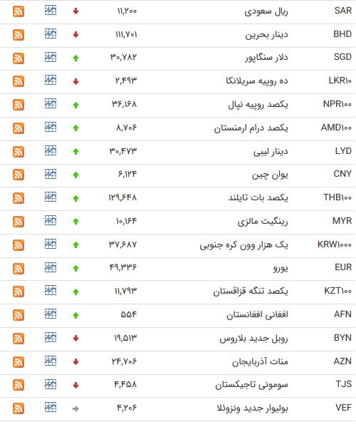 بانک مرکزی امروز نرخ ۳۹ ارز عمده در برابر ریال را اعلام کرد که بر اساس آن نرخ ۱۰ ارز کاهش، ۲۴ ارز افزایش و ۵ ارز ثابت مانده است.
