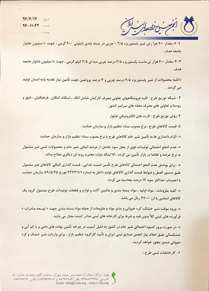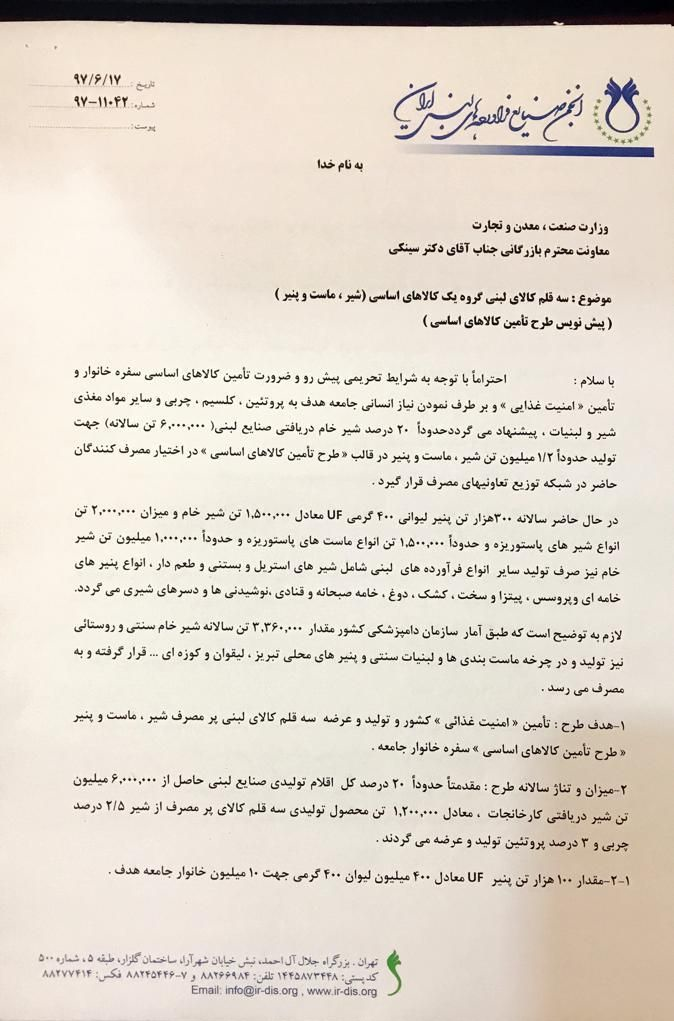 به گزارش خبرنگار فارس، این نامه در تاریخ 17 شهریور ماه تنظیم و به دفتر وزیر جهاد کشاورزی، وزیر صنعت، معدن، تجارت و ستاد تنظیم بازار ارسال شده است.