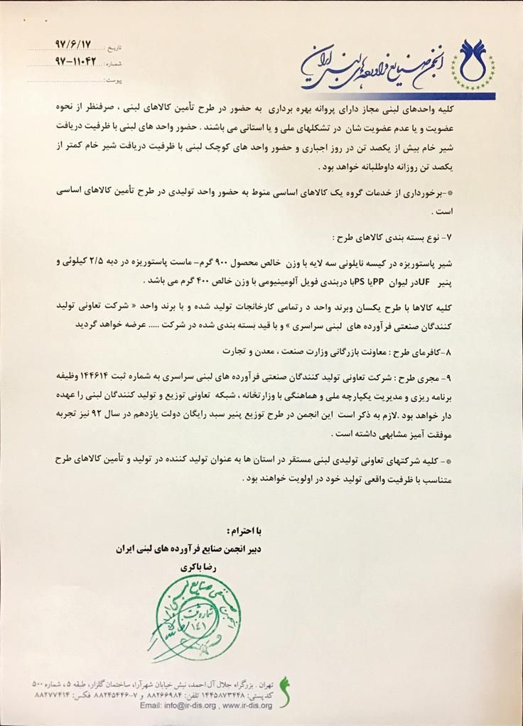 طرح صنایع لبنی برای توزیع لبنیات ارزان قیمت