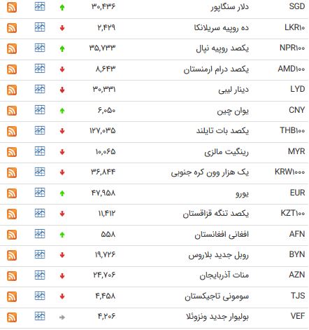 نرخ ارزهای رایج اعلام شده از سوی بانک مرکزی را در جدول زیر مشاهده کنید: