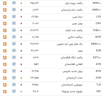 نرخ ارزهای رایج اعلام شده از سوی بانک مرکزی را در جدول زیر مشاهده کنید: