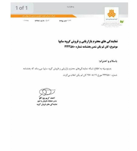 بدین وسیله به اطلاع شبکه نمایندگیهای بازار و فروش گروه خودروسازی سایپا میرساند که بخشنامه شماره 333580 مورخ 19 آبان 97 کان لم یکن اعلام میگردد.