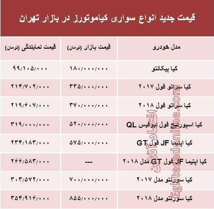 آنچه در زیر میآید قیمت روز انواع سواریهای کیاموتورز در سطح بازار پایتخت طی آبان ماه ۹۷ است.