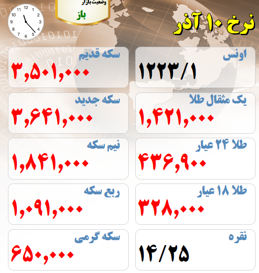 قیمت های بازار طلا و سکه امروز 10 آذر ماه :