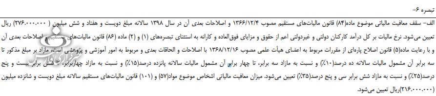 در تبصره ۶ ماده واحده لایحه بودجه ۹۸ آمده است: