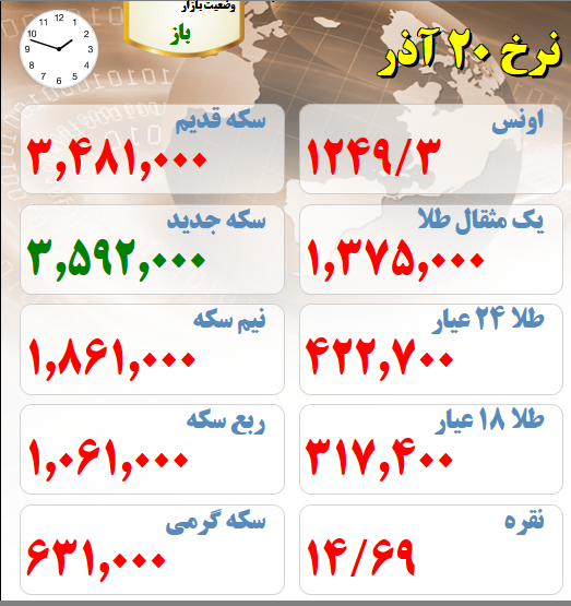 قیمت های بازار طلا و سکه امروز 20 آذر ماه :