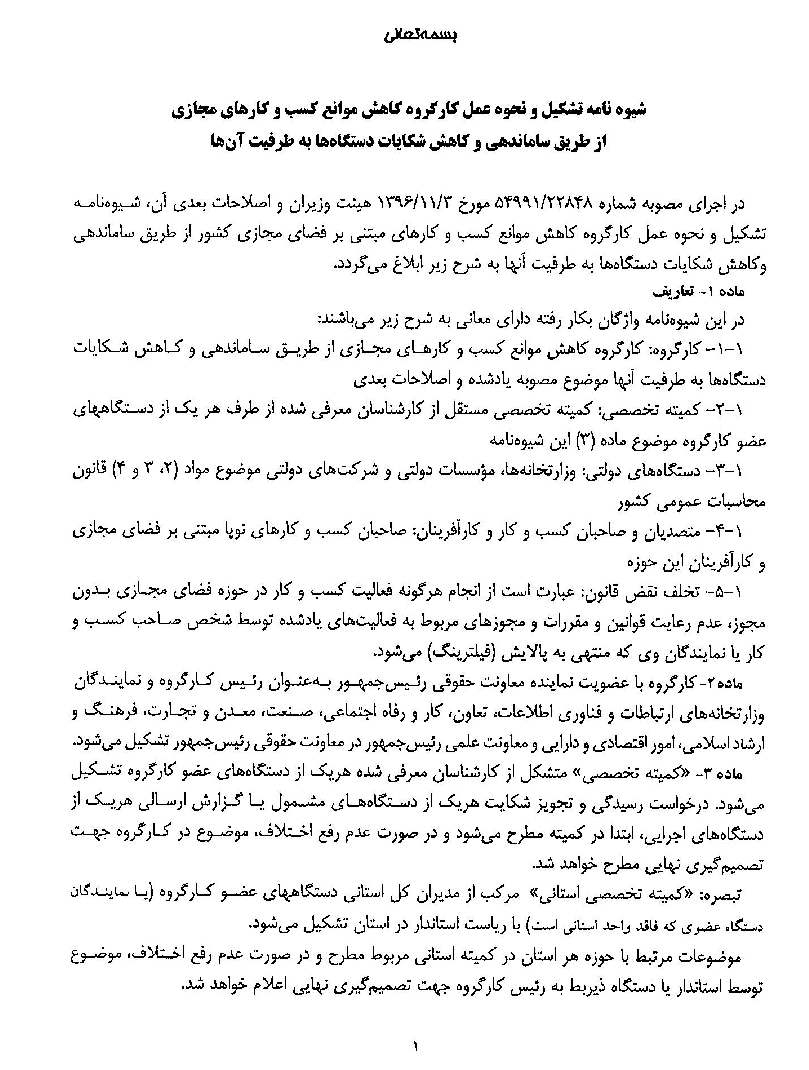 سازوکار اجرایی کارگروه کاهش موانع و حمایت از کسب و کارهای مبتنی بر فضای مجازی به دستگاه های اجرایی ابلاغ شد.