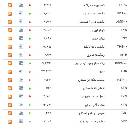 بانک مرکزی امروز نرخ ۳۹ ارز عمده در برابر ریال را اعلام کرد که بر این اساس نرخ ۵ ارز ثابت، ۱۶ ارز کاهش و ۱۸ ارز افزایش یافت.
