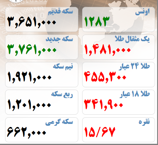 قیمت طلا و سکه در بازار تهران