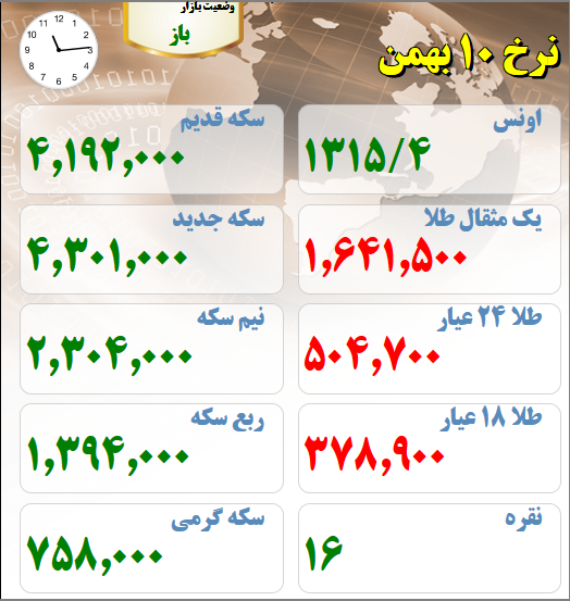 قیمت های بازار طلا و سکه امروز دهم بهمن ماه :
