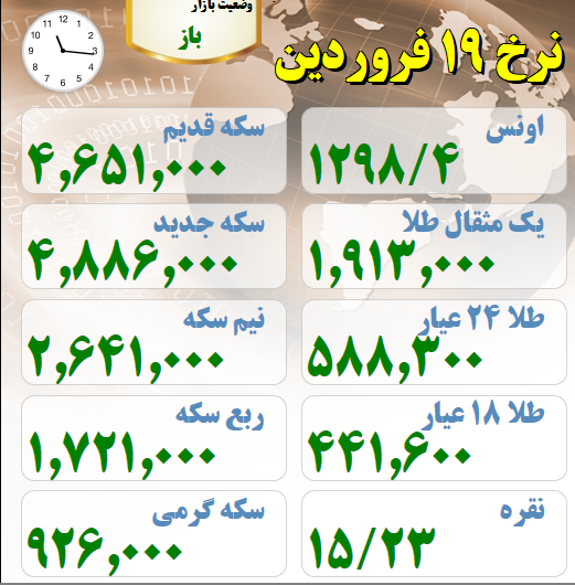 قیمت های بازار طلا و سکه امروزنوزدهم فروردین ماه :