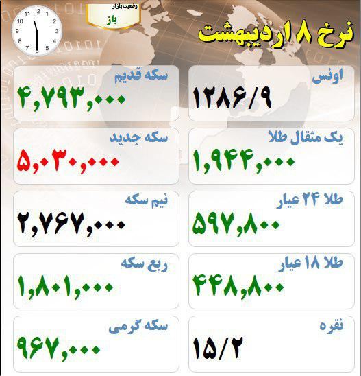 نرخ طلا و سکه 8 اردیبهشت