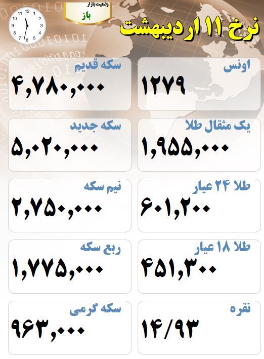 قیمت طلا و سکه 11 اردیبهشت صبح