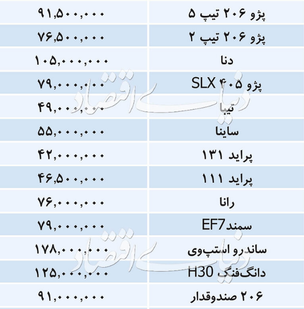 قیمت خودروهای داخلی در بازار امروز 14 شهریورماه