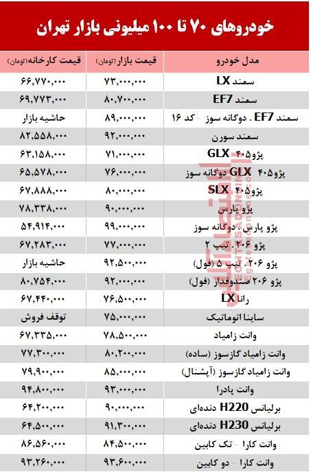 خودروهای زیر ۱۰۰ میلیون بازار تهران