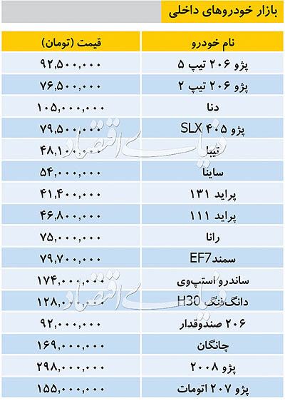 سایت طلا:دوجدول زیر قیمت انواع خودروهای داخلی(محصولات سایپا و ایران خودرو) و خودروهای وارداتی را منتشر کرده است.